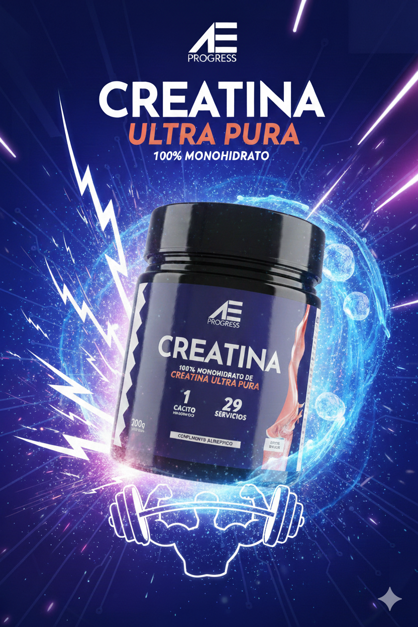 La Creatina AE Progress es monohidrato de creatina ultrapura, una de las ayudas deportivas más estudiadas y eficaces para mejorar el rendimiento físico, muscular y cerebral.